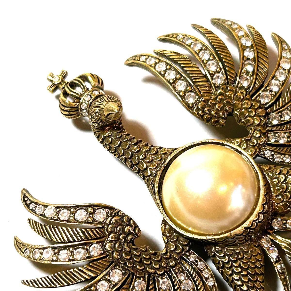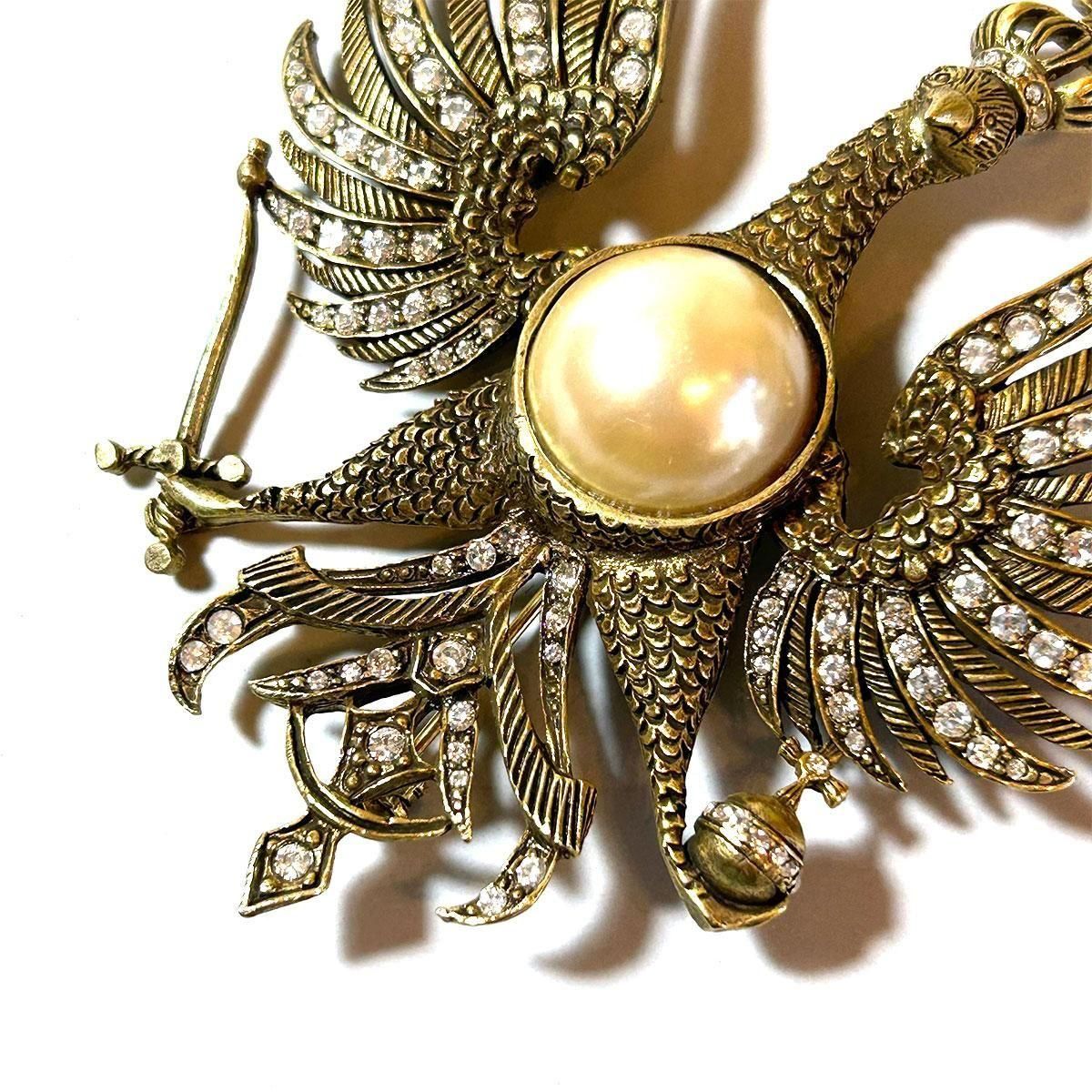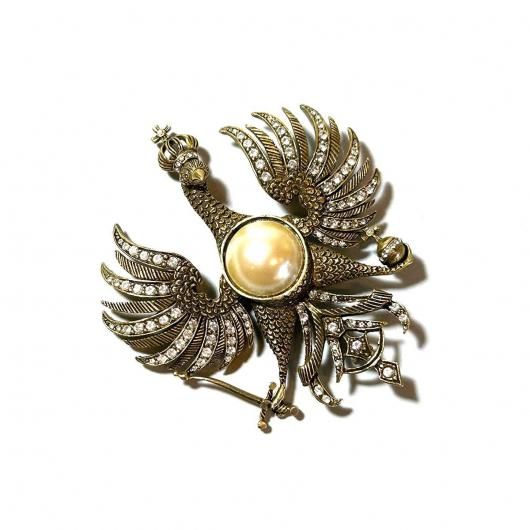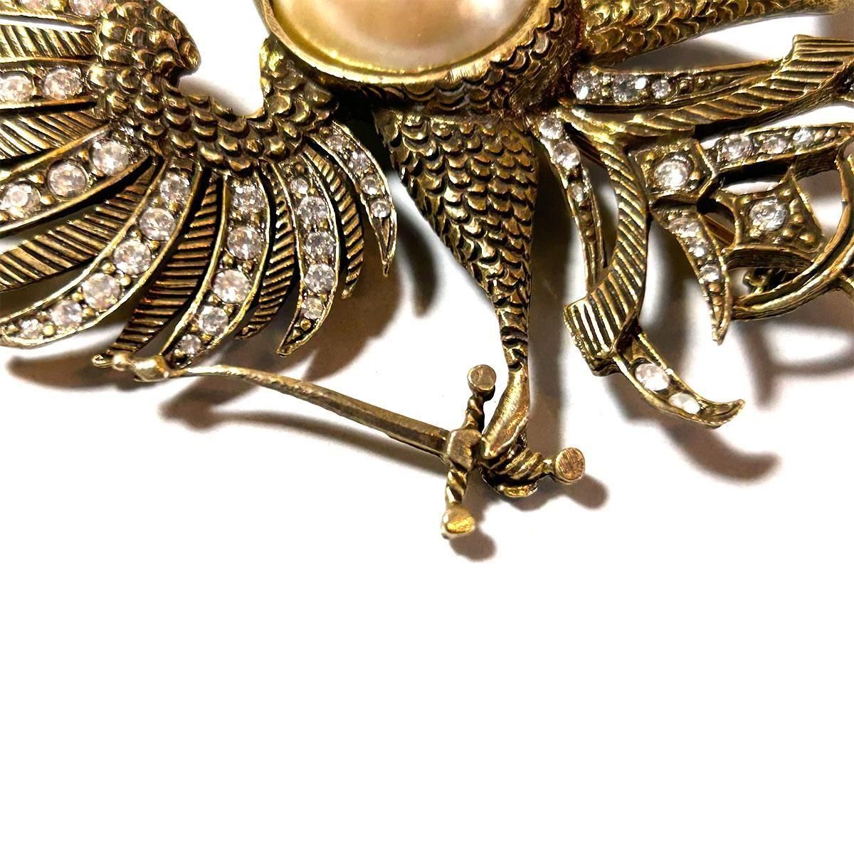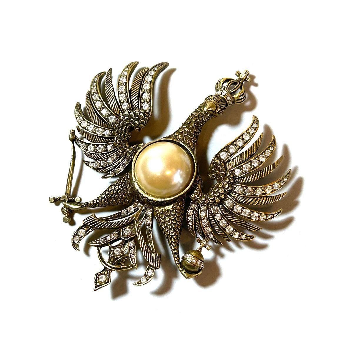 ★1980s eagle motif pearl & rhinestone vintage brooch
