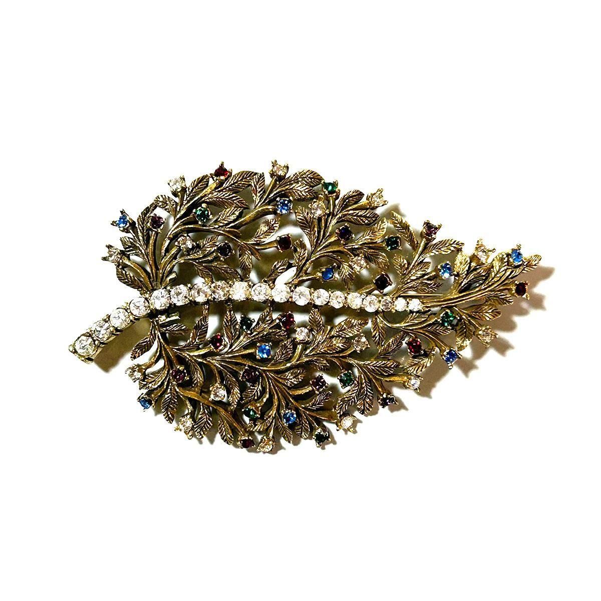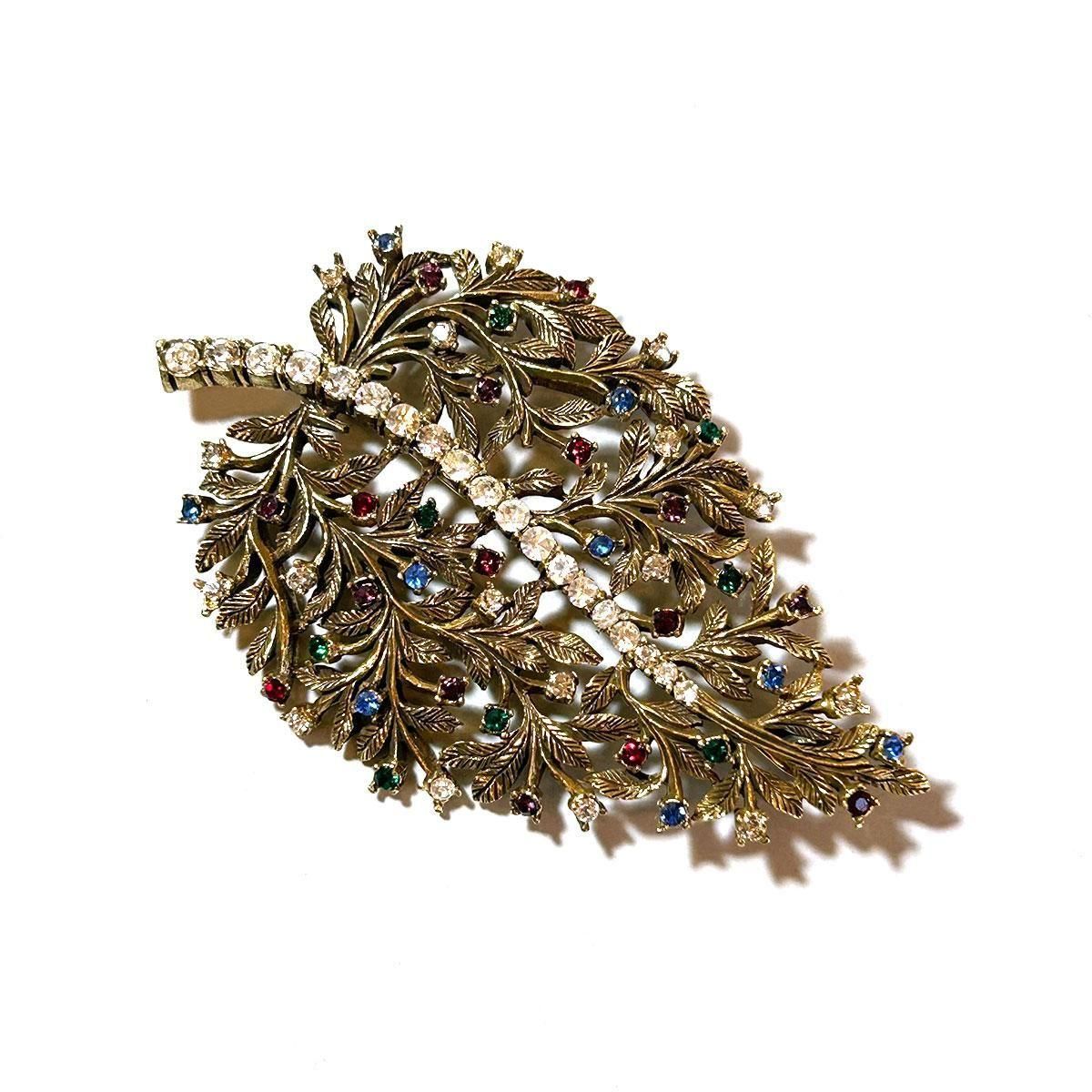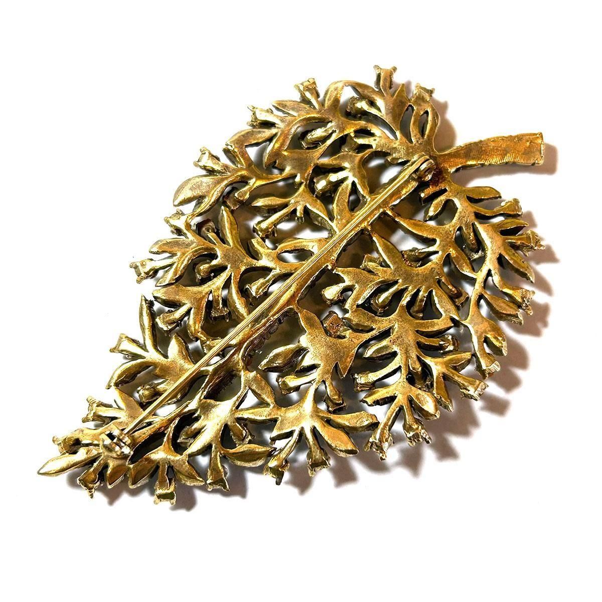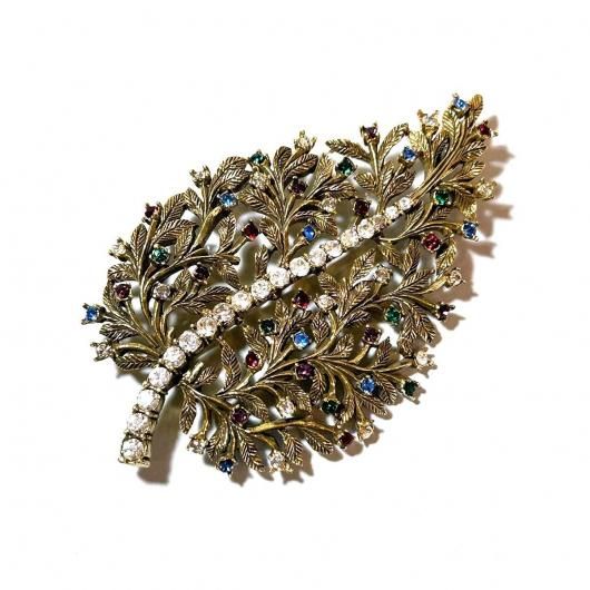 自然の美しさと宝石の煌めきを融合させたこのリーフブローチは